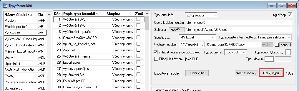 • Definuje se přes volbu "Úplný výpis"