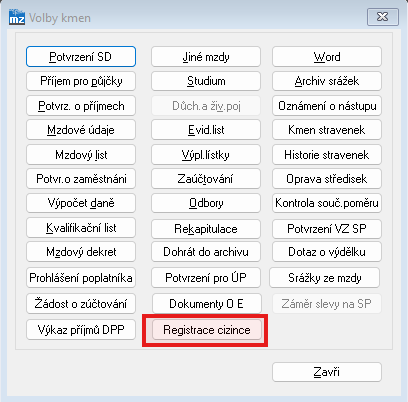 Ve volbách je nové tlačítko "'''Registrace cizince'''", pro vytvoření a odeslání informační karty o zaměstnání cizince | |||