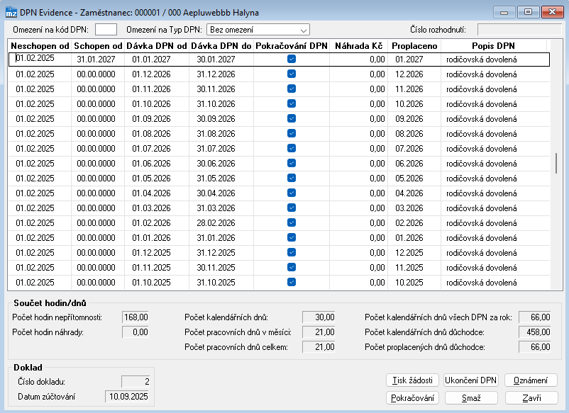 Nová podoba evidence DPN pro vetší přehled a optimalizace rychlosti samotného programu. | |||