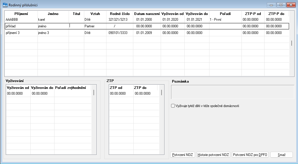 == ''' | === Evidence rodinných příslušníků === | ||